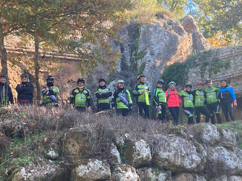 Escursione in MTB alla necropoli etrusca di Norchia, un sito archeologico preistorico, etrusco, romano e medievale nei pressi di Vetralla nella Tuscia viterbese.